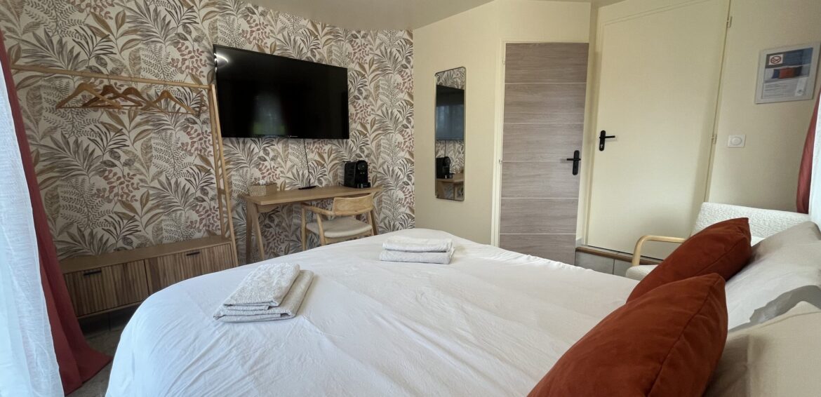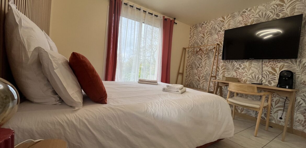 Découvrez notre charmante chambre “Ventre à Choux”, un cocon douillet de 18m² idéal pour deux personnes, parfait pour une escapade en couple.