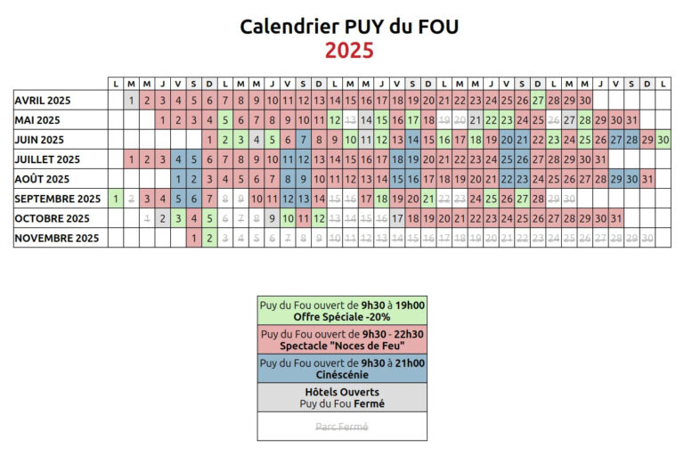 Nous vous invitons à regarder le calendrier du puy du fou avant votre venu. Nous vous conseillons aussi de réserver votre soirée à la Cinéscénie avant de faire votre réservation de chambre.